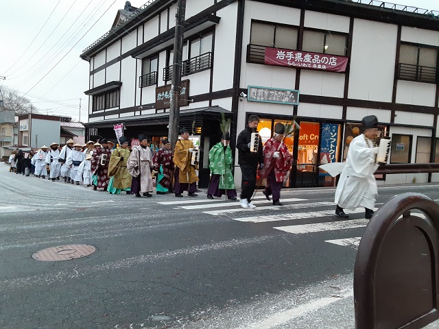 今年も一関市東山町から「磐井清水若水送り」行列を迎えての新年です。