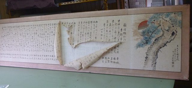 古物愛好家の方の、泥海水をかぶってそのままになっていた軸もの、
