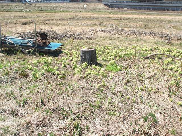 一昨年、去年と夏になると毛虫に悩まされていたクルミの大木も、切り株を残してこの通り。まわりにはフキノトウが満開になりました。