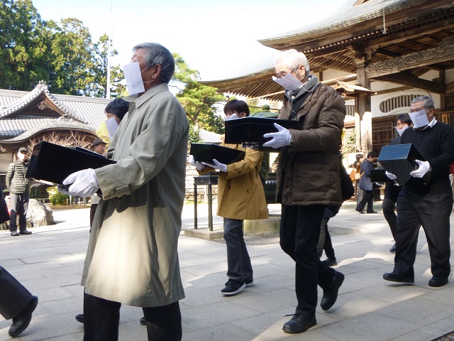 先頭は御詠歌衆、次は僧侶の方々、その後ろに仏様にお供えする