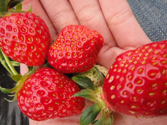 真っ赤に熟して、おいしそうに光っているイチゴでしょ。