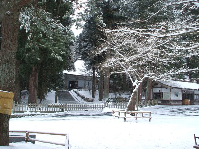 朝だったので人出も少なく、お札所の職員さんが雪掃きをしている姿が印象的でした。