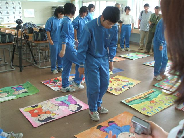 写真は原画を元に平泉中学校の美術部の生徒さんたちが