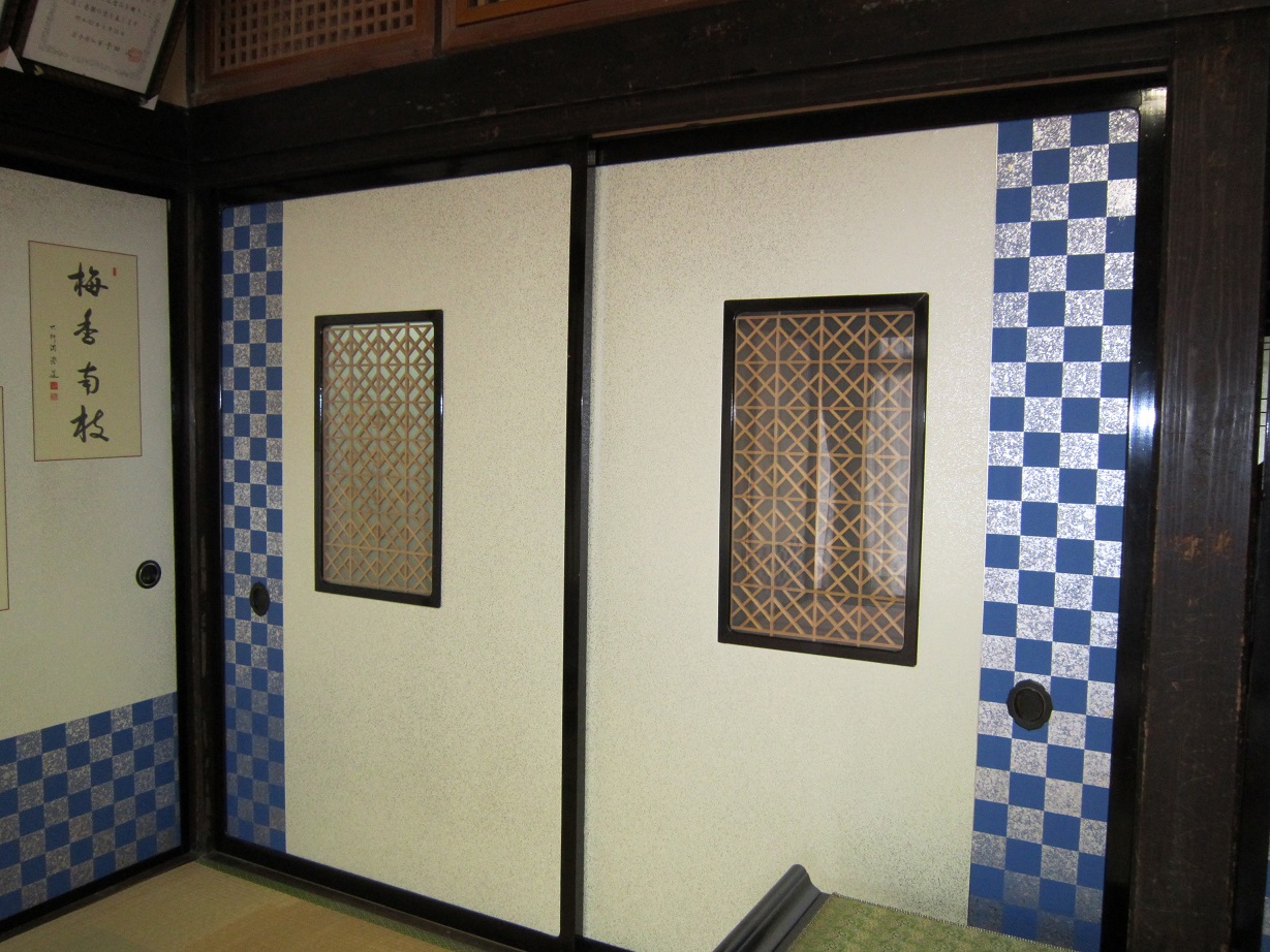 ガラス窓付き以外のフスマには既存の書画作品を洗い、修復して