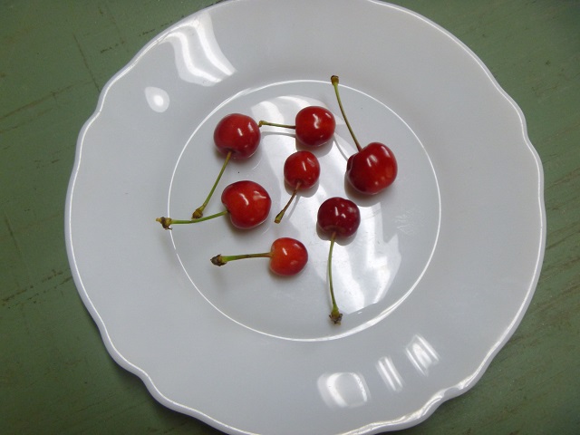 工房の庭のちいさなサクランボの木に