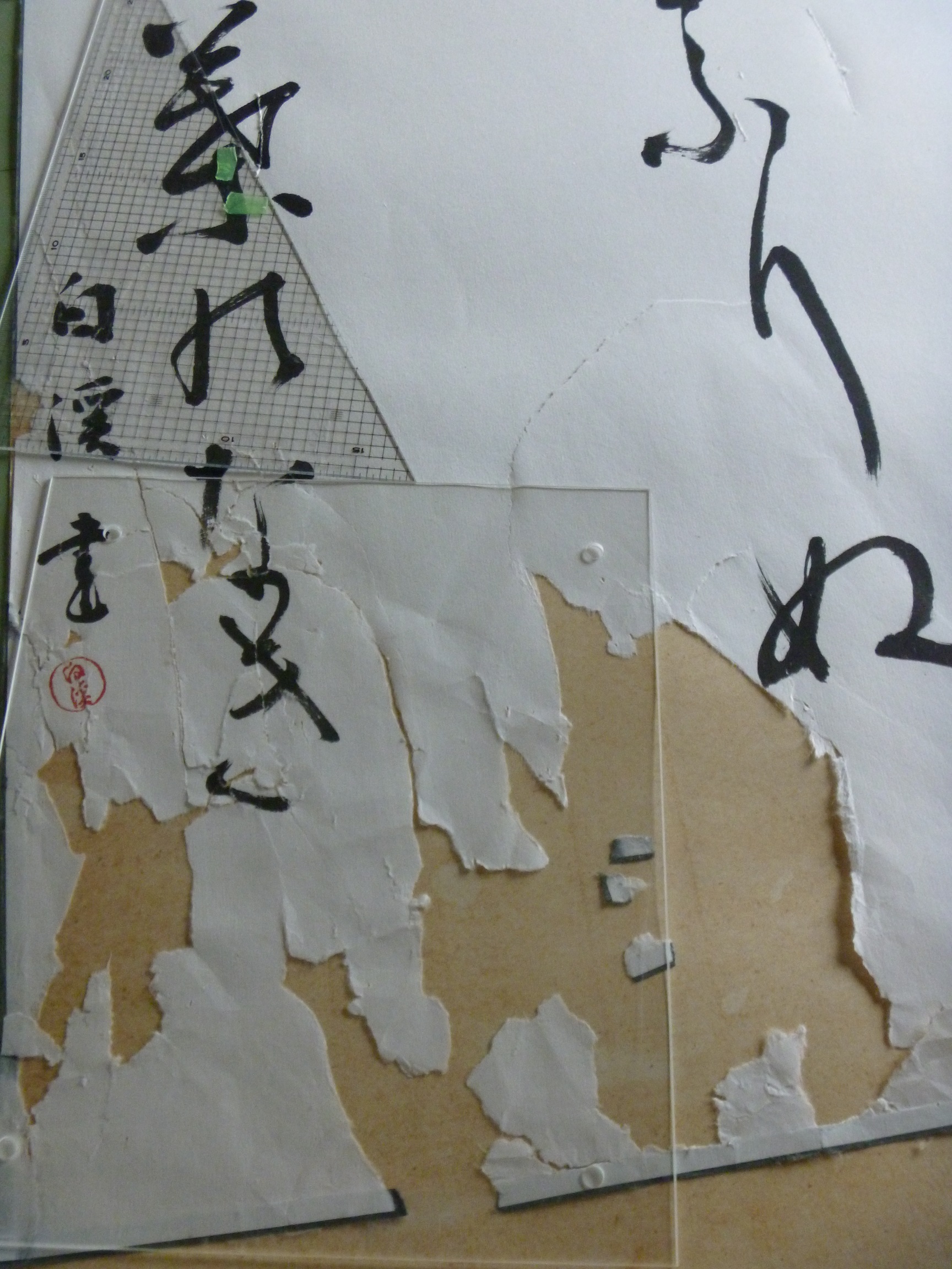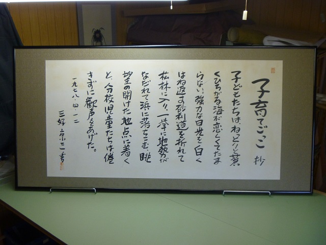 作品展に出品する書道の掛け軸は別の部屋の作業台で